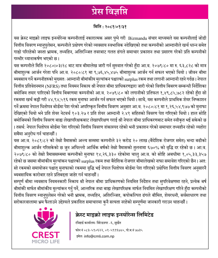 प्रेस बिज्ञप्ति (२०८२-०१-३१)